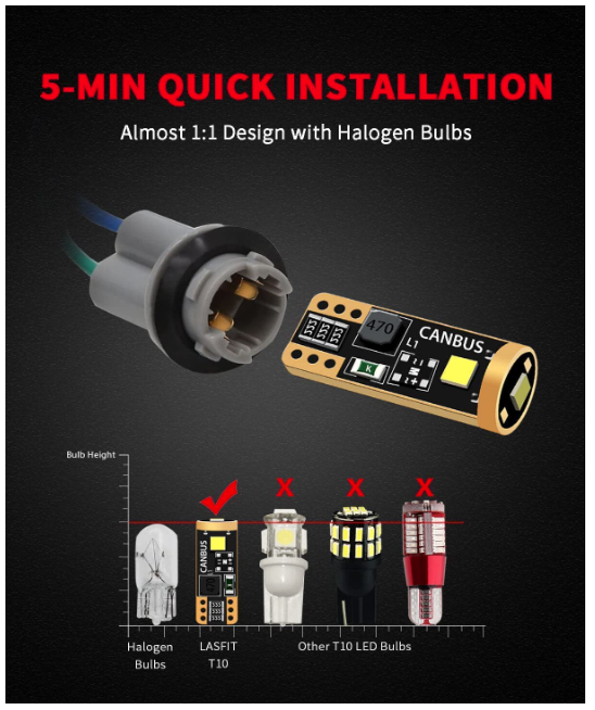 【CAN-BUS Ready】194 led built-in CANBUS system, is compatible with 95% vehicles, preventing error code and odd flickering.